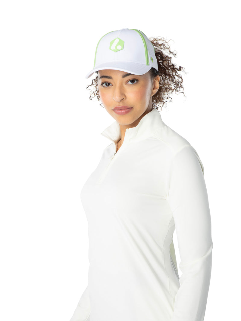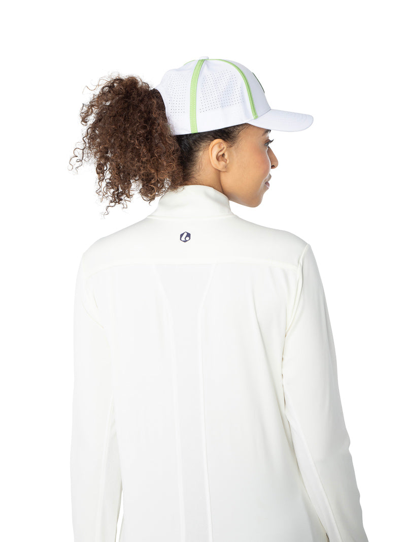 Our Long Sleeve Q-Zip is the ideal addition to your golf wardrobe, combining practicality with a chic design. Whether you’re warming up, seeking sun protection, or need an extra layer during a breezy day, this Q-Zip promises to keep you comfortable and stylish.